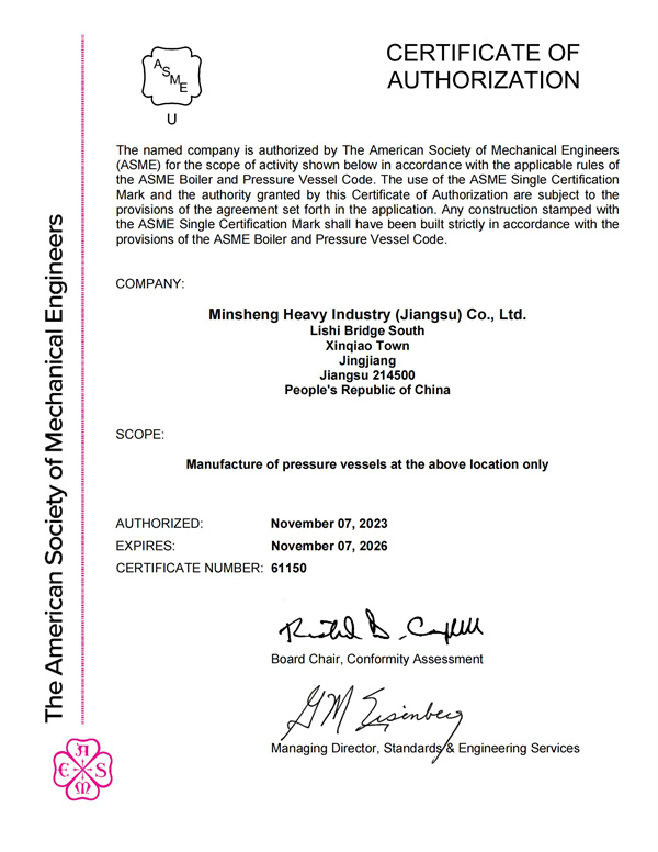 ASME證書(shū)