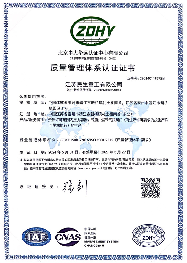 ISO9001質(zhì)量管理體系認(rèn)證證書(shū)