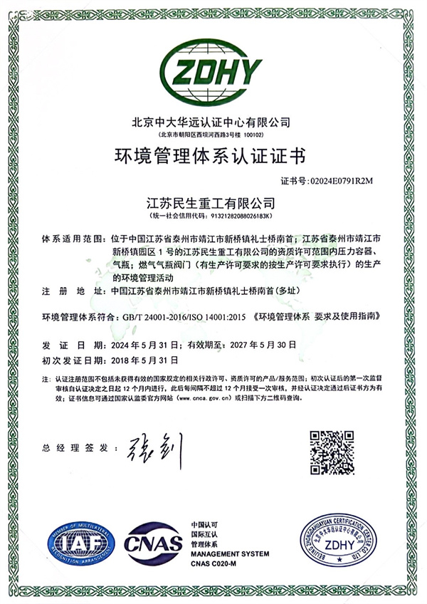 ISO14001環(huán)境管理體系認(rèn)證證書(shū)